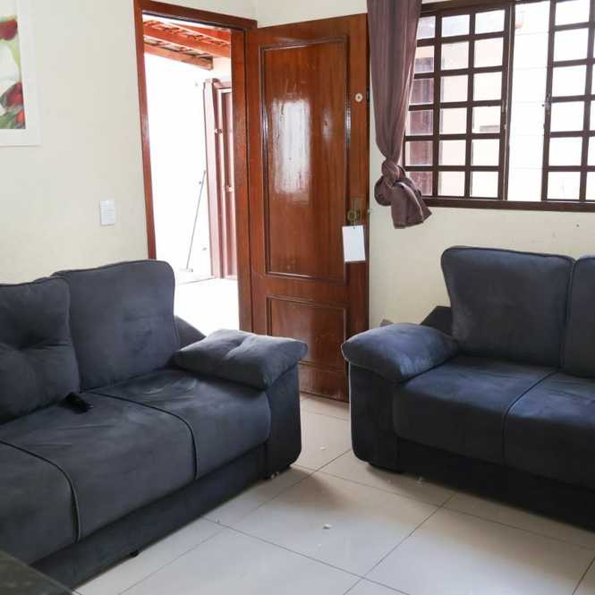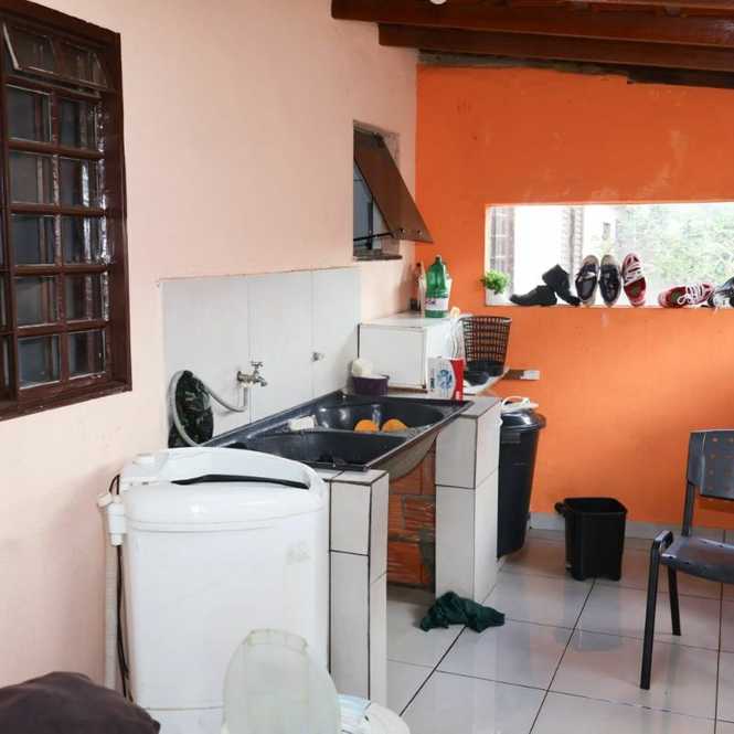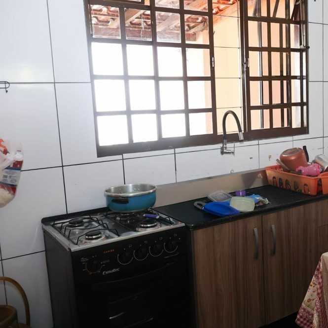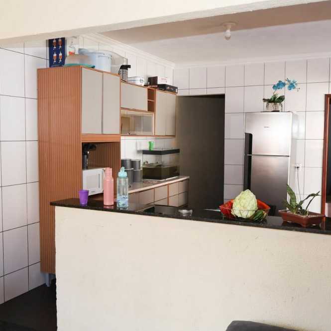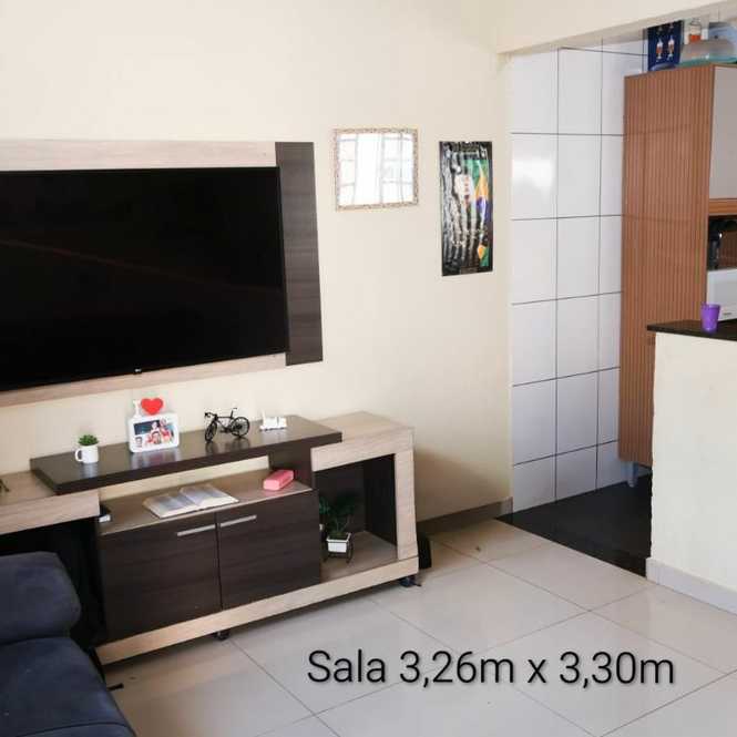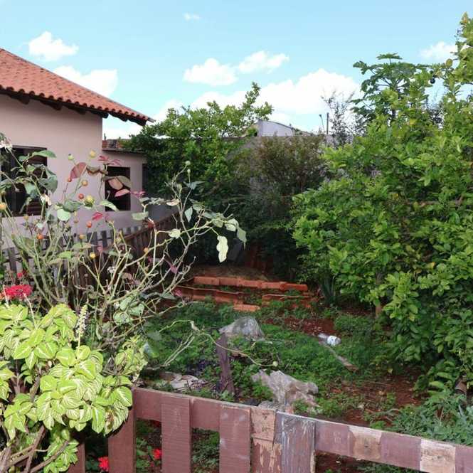 É uma casa com terreno de 250 metros, toda em alvenaria, garagem coberta, 3 quartos, banheiro, sala e cozinha integrada. Casa com 70 metros. Quintal em grande parte cimentado + espaço com horta.